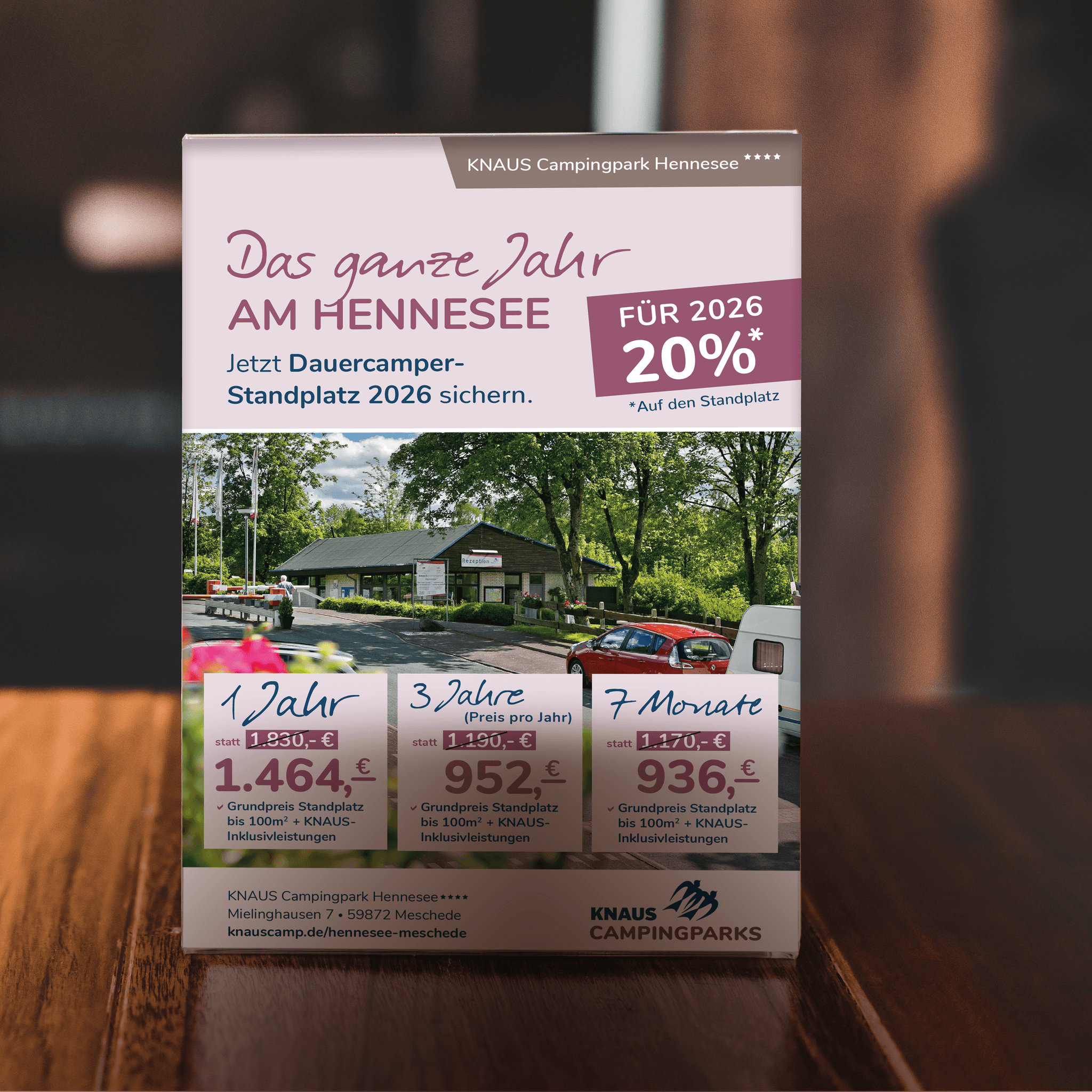 20% Rabatt* auf den Dauercamper Standplatz 2026 am Hennesee