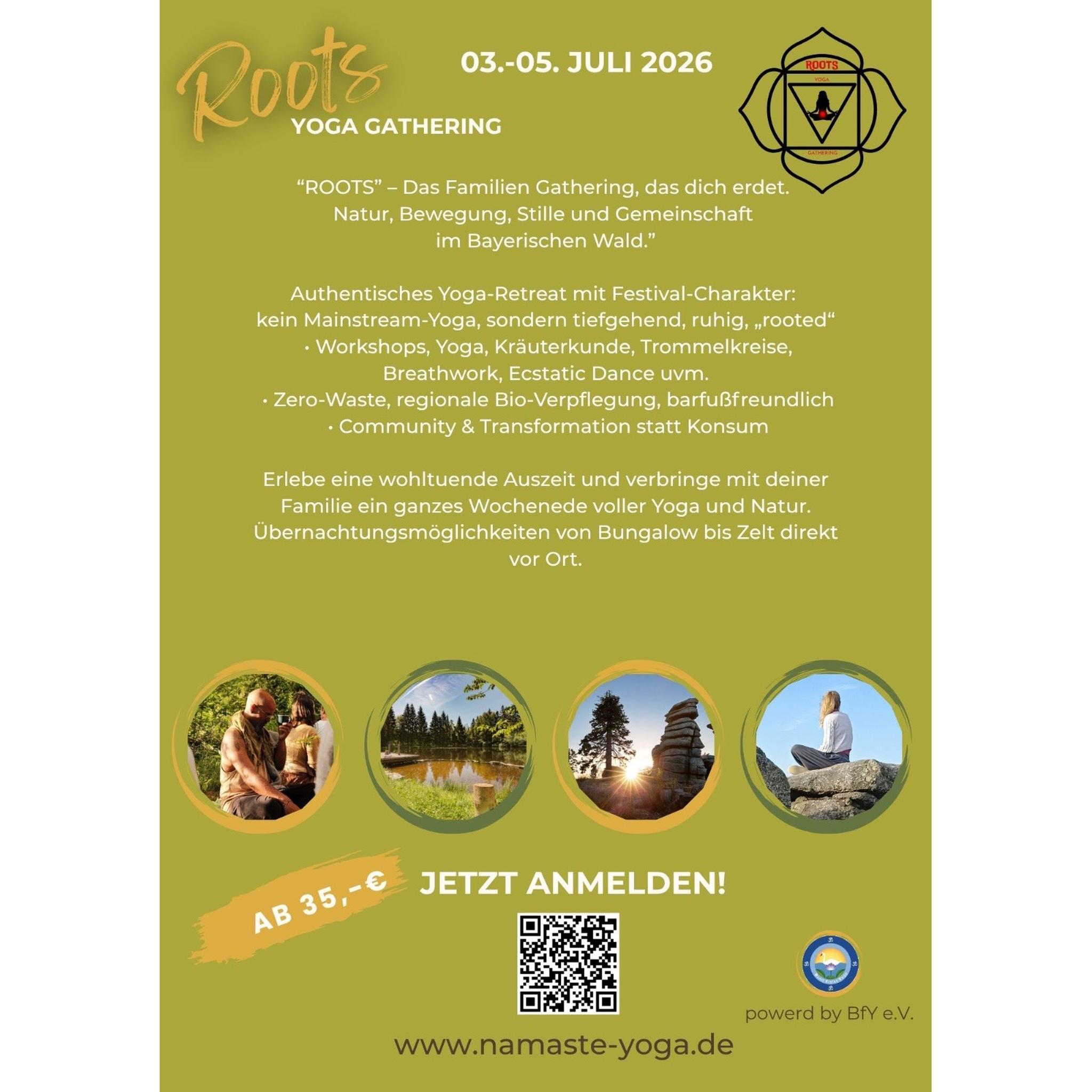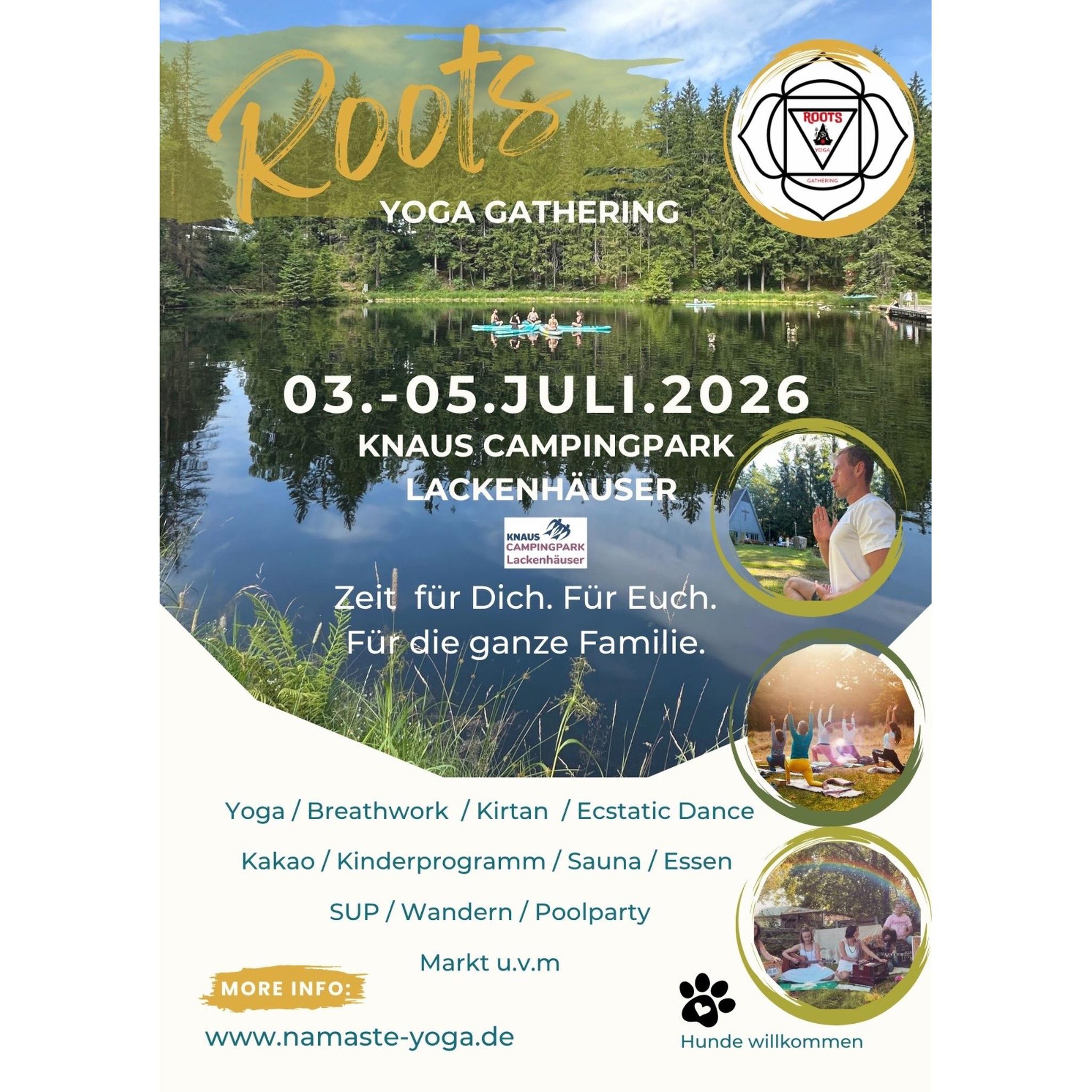 Termin: 03. Bis 5. Juli 2026. Roots Yoga Gathering – Zeit für Dich. Für Euch. Für die ganze Familie.